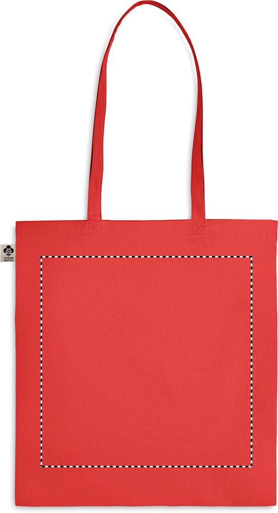 Boodschappentas van organisch katoen met lange hengsels. Een klassiek tote/draagtasontwerp gemaakt om je dagelijkse boodschappen of andere items in te vervoeren. Draag de tas in je handen of over je schouder met de lange hengsels. Gemaakt van 100% natuurlijk organisch katoen 140 gr / m².