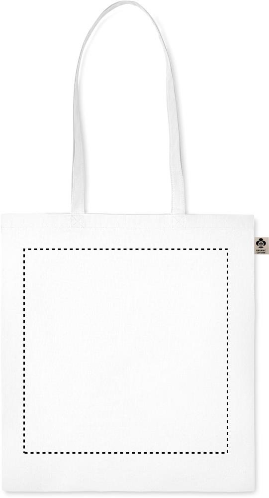 Boodschappentas van organisch katoen met lange hengsels. Een klassiek tote/draagtasontwerp gemaakt om je dagelijkse boodschappen of andere items in te vervoeren. Draag de tas in je handen of over je schouder met de lange hengsels. Gemaakt van 100% natuurlijk organisch katoen 140 gr / m².