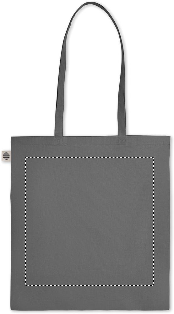 Boodschappentas van organisch katoen met lange hengsels. Een klassiek tote/draagtasontwerp gemaakt om je dagelijkse boodschappen of andere items in te vervoeren. Draag de tas in je handen of over je schouder met de lange hengsels. Gemaakt van 100% natuurlijk organisch katoen 140 gr / m².