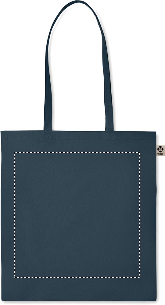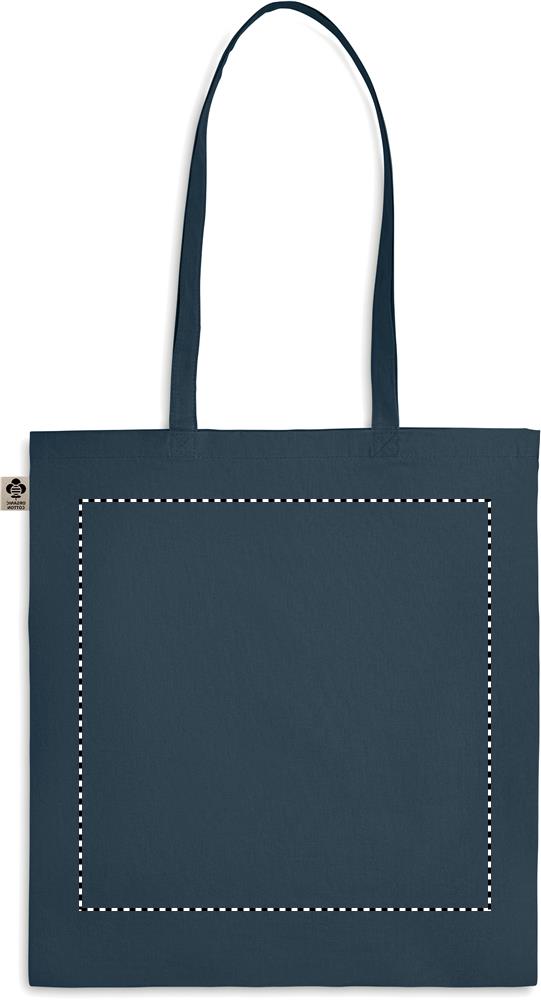 Boodschappentas van organisch katoen met lange hengsels. Een klassiek tote/draagtasontwerp gemaakt om je dagelijkse boodschappen of andere items in te vervoeren. Draag de tas in je handen of over je schouder met de lange hengsels. Gemaakt van 100% natuurlijk organisch katoen 140 gr / m².